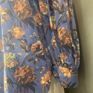 リバティプリントのエレガントなフラワープリントのブラウス。シックカラーで秋を装います。