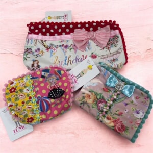 秋冬物も大好評いただきました。おなじみの可愛いチャームやポーチ、バッグなど、華やかでとっても凝っています。1点1点についてるネームもキュートです。定番のインナーはもちろん、新作のパジャマも入荷しております。ぜひご覧ください。
