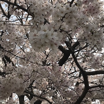 ホテル前のポルタス広場から続く街道には短い桜並木があり、今年も満開の桜が咲きました。